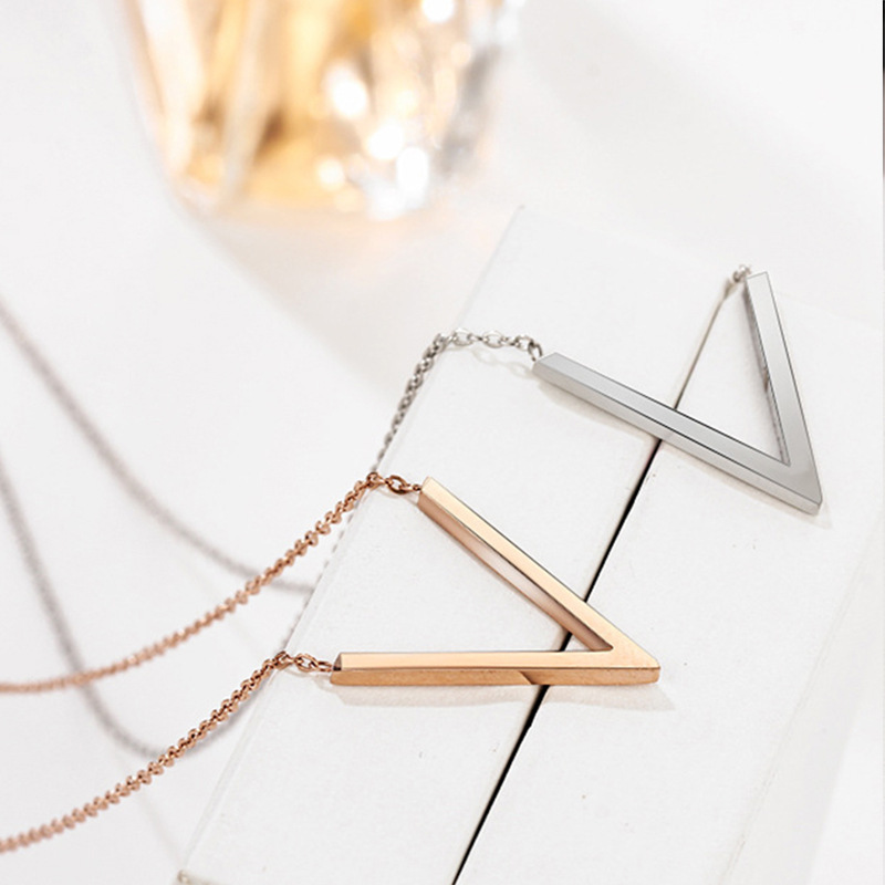 Foreign trade titanium steel letter V-shaped pendant necklace same style women's stainless steel clavicle chain simple style