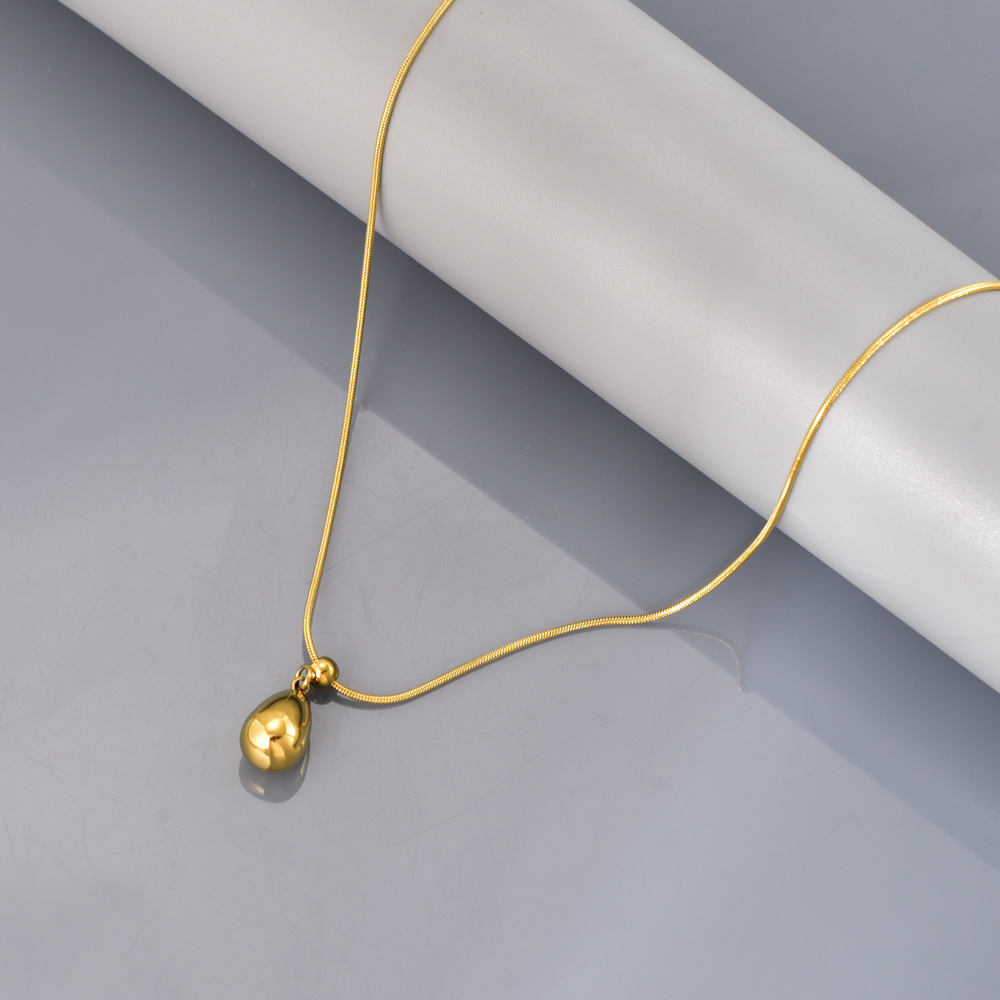 L48 European and American Fashion Women's Stainless Steel Water Drop Pendant Necklace Gold Simple Ins Style Pendant