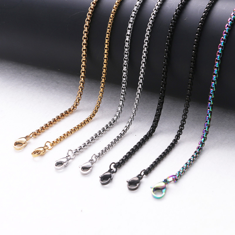 Cross-border European and American jewelry stainless steel necklace square Pearl Chain 2/2.5/3MM personalized DIY small chain jewelry accessories