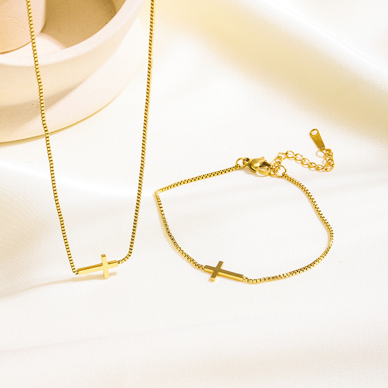New European and American Cross-border Popular Stainless Steel Cross Necklace Women Adjustable High Sense Box Chain Fashion Jewelry