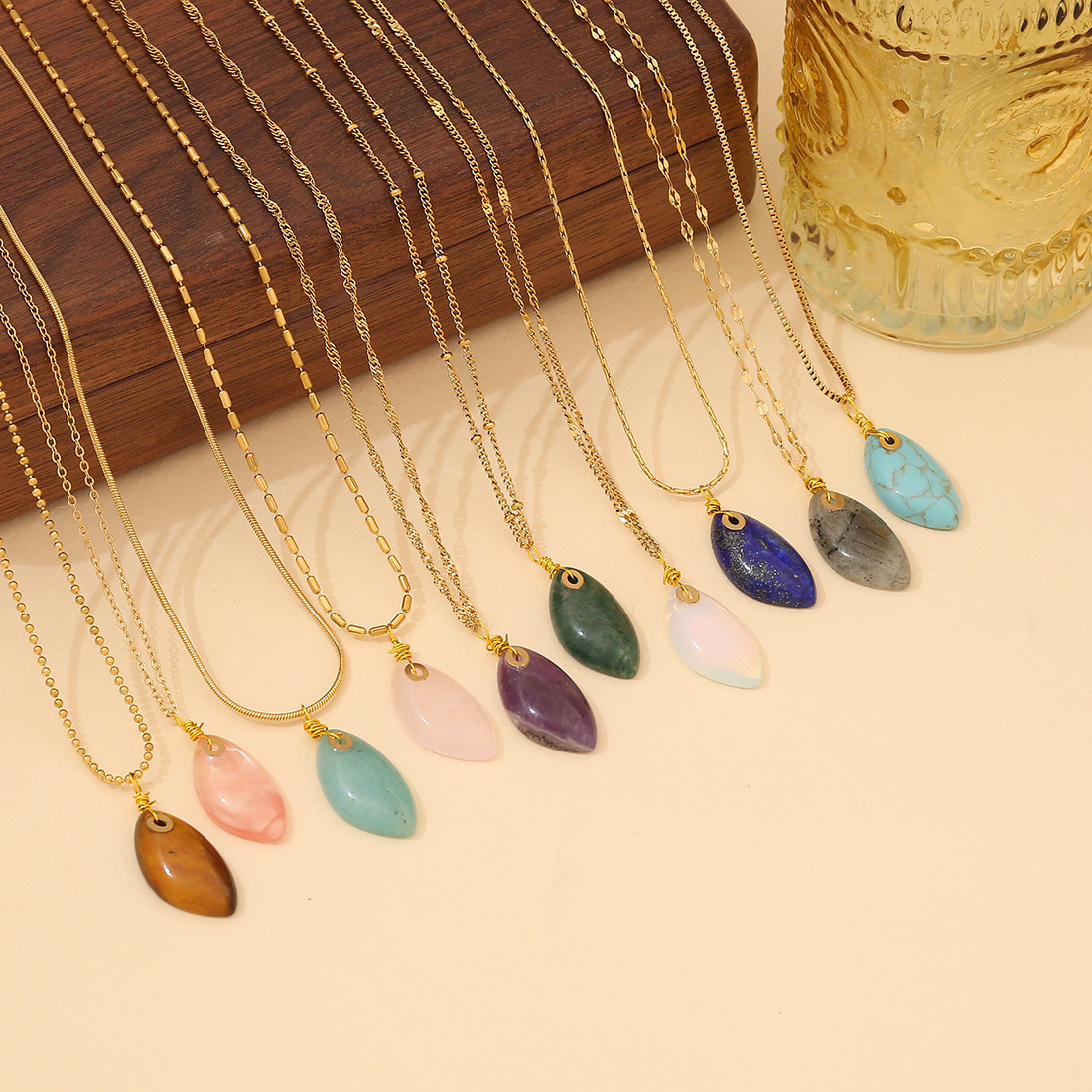 [Ice Meng] special-shaped natural stone pendant personality stainless steel jewelry Europe and the United States cross-border new jewelry N110