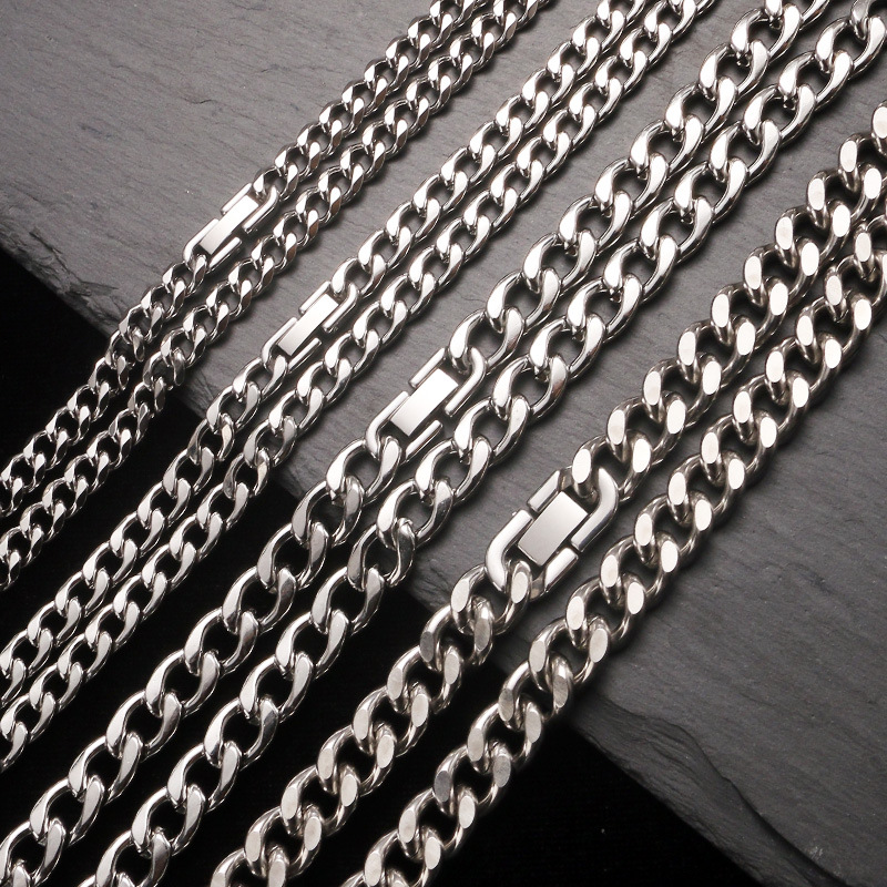 Fashion Cuban chain non-fading jewelry buckle stainless steel necklace men and women cross-border personality street style necklace