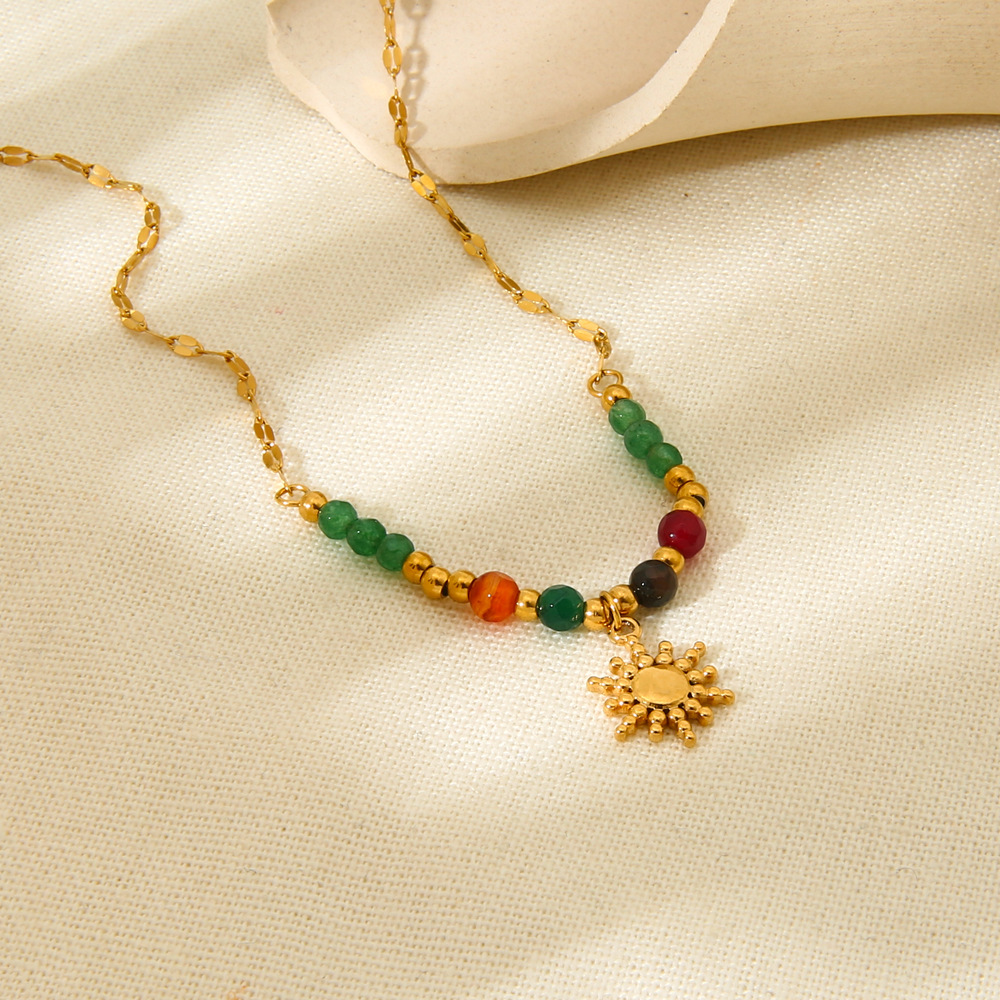 European and American Cross-border New 18K Gold-plated Stainless Steel Necklace Natural Stone Sun Pendant Necklace Fashion All-match Women