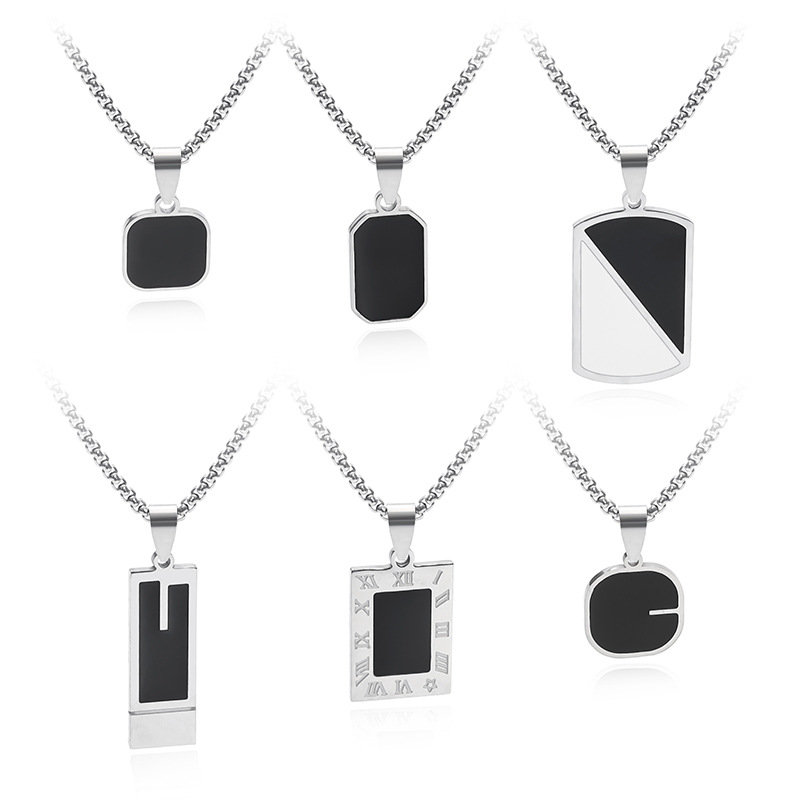Cross-Border Stainless Steel Square Pendant Black Epoxy Necklace Niche Design Ins Long Sweater Chain Necklace Wholesale