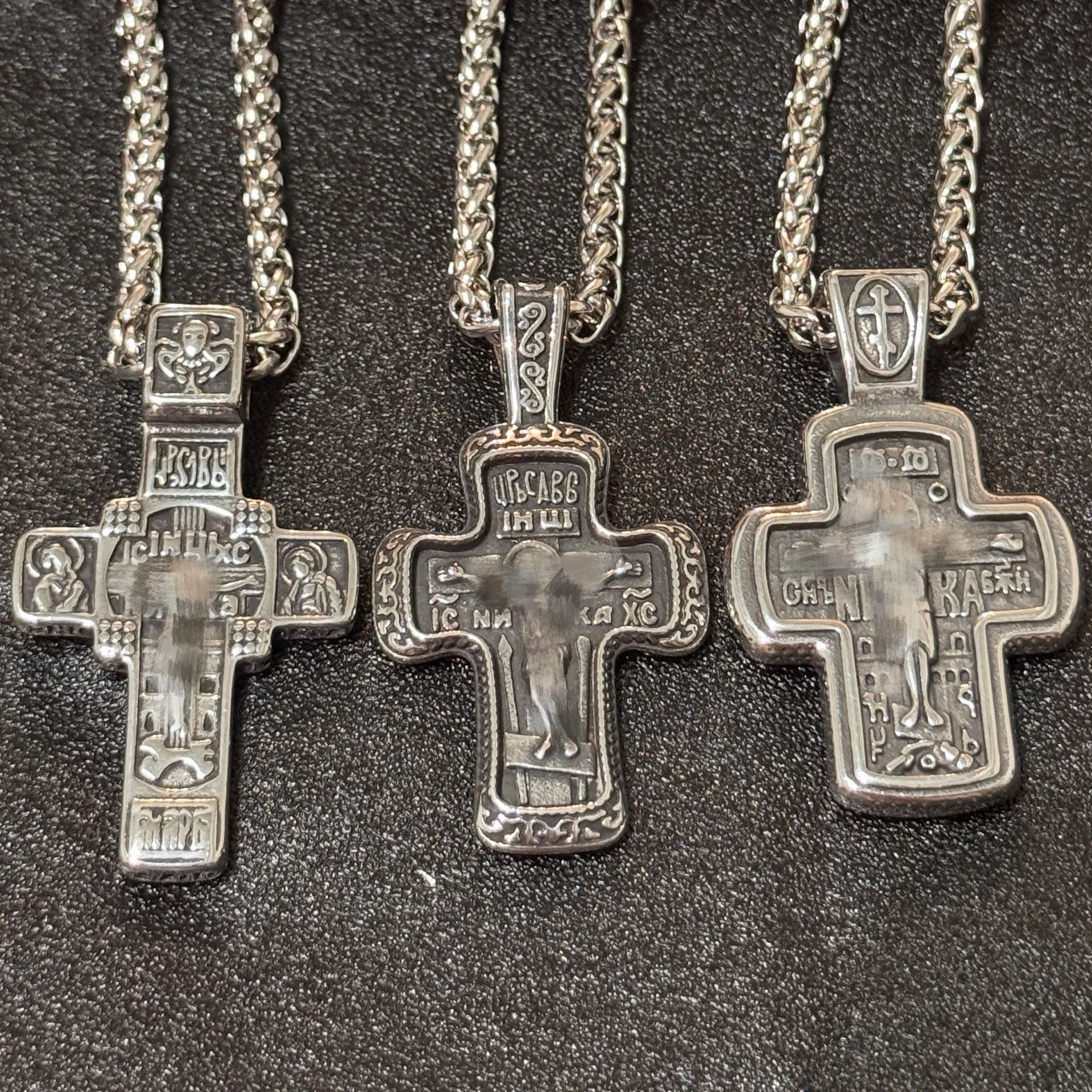 Foreign trade jewelry European and American retro portrait cross titanium steel necklace ins hip-hop men's personalized stainless steel pendant