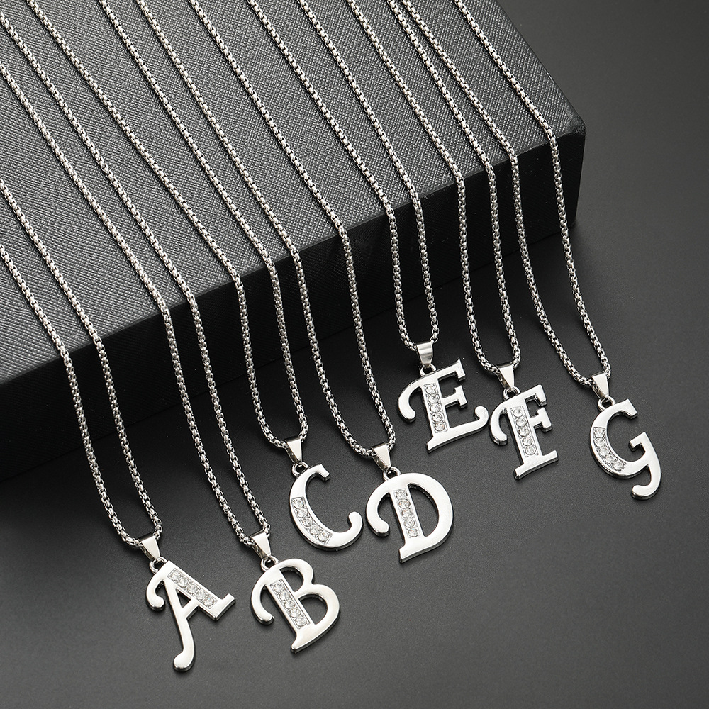 Cross-Border European and American Popular Stainless Steel Jewelry 26 English Letters Necklace Jewelry Pendant Pendant Jewelry Wholesale