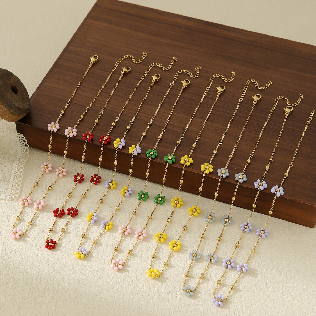 Cross-Border Hot-Selling Elegant Colorful Small Flower Stainless Steel Necklace, Niche Minimalist Women's Jewelry Wholesale