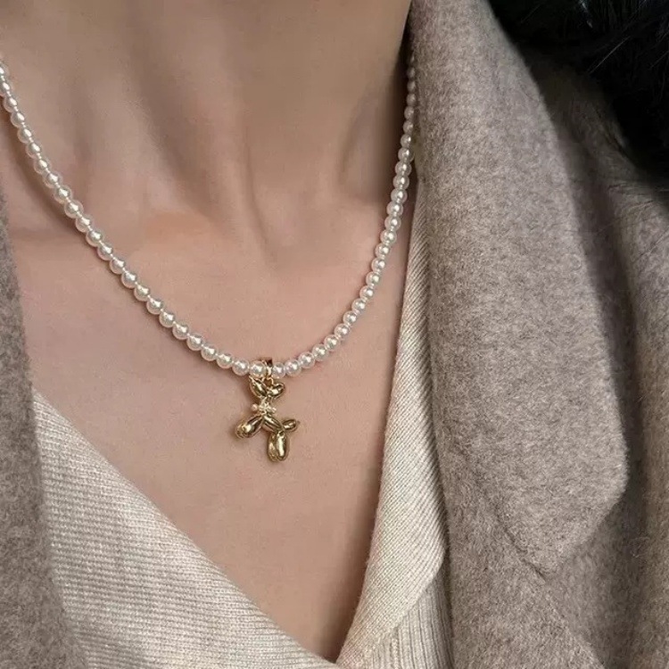 Gold Balloon Dog Pearl Necklace Light Luxury Niche Xiaomi Beads Beaded Jewelry Women's High-End Metal Pendant Accessories