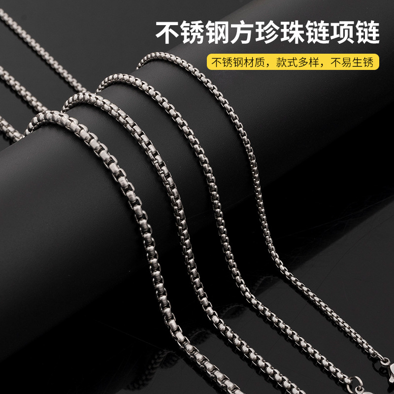 Stainless Steel Square Pearl Chain Titanium Steel Necklace Men's Trendy Hip-Hop Titanium Steel Jewelry Accessories Chain Cross-Border Interlocking