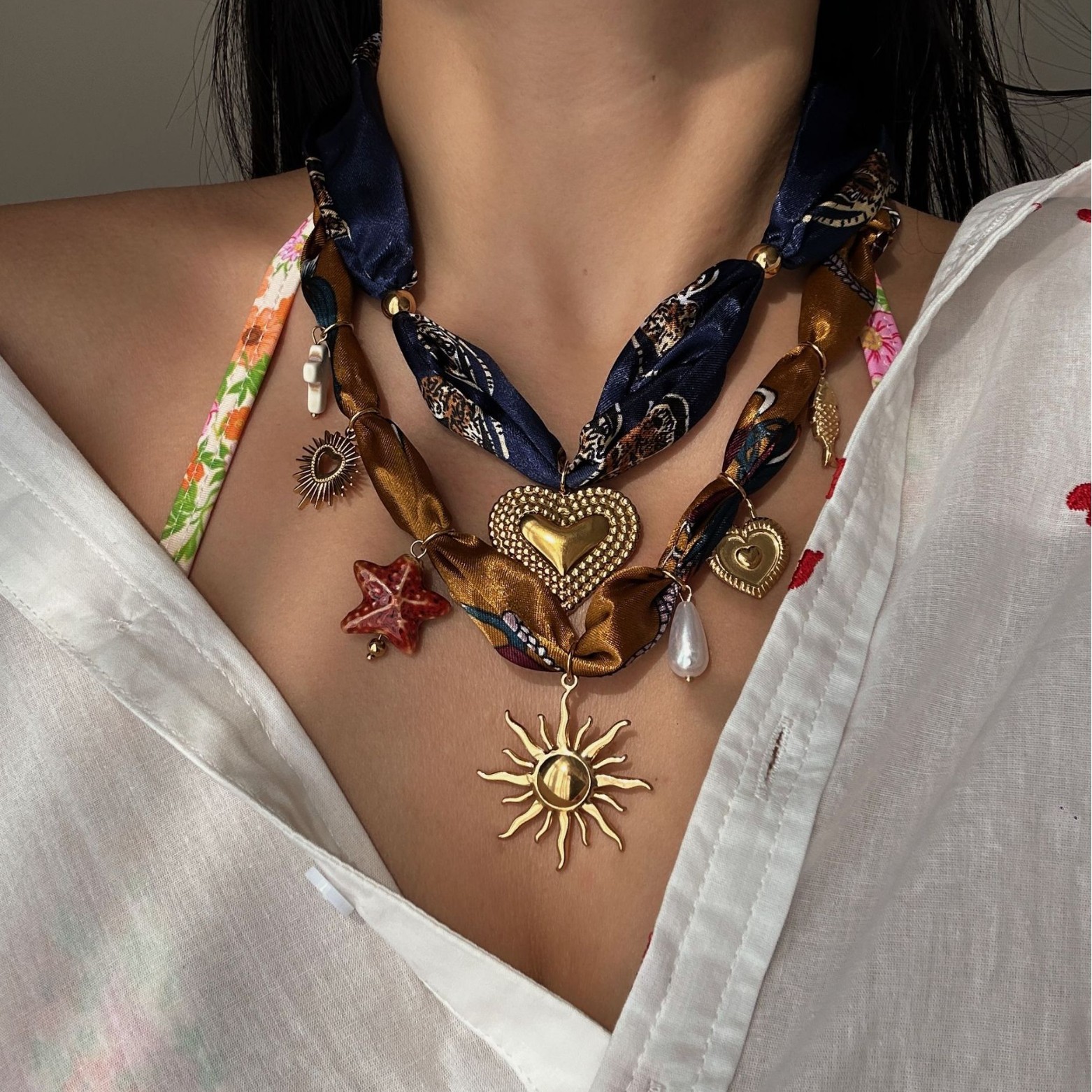 European and American Cross-Border Ceramic Pendant Ribbon Necklace Temperament Dopamine Literary Fresh Niche Stainless Steel Necklace Flowers