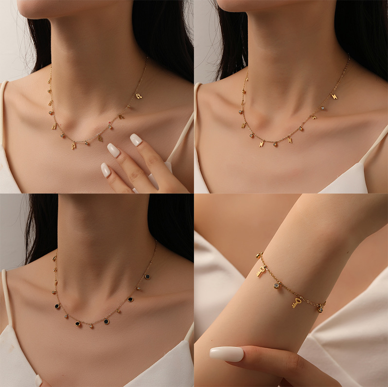 Privately Customized Stainless Steel Twelve Birthstone Custom Name Necklace DIY Personalized English Letter Necklace