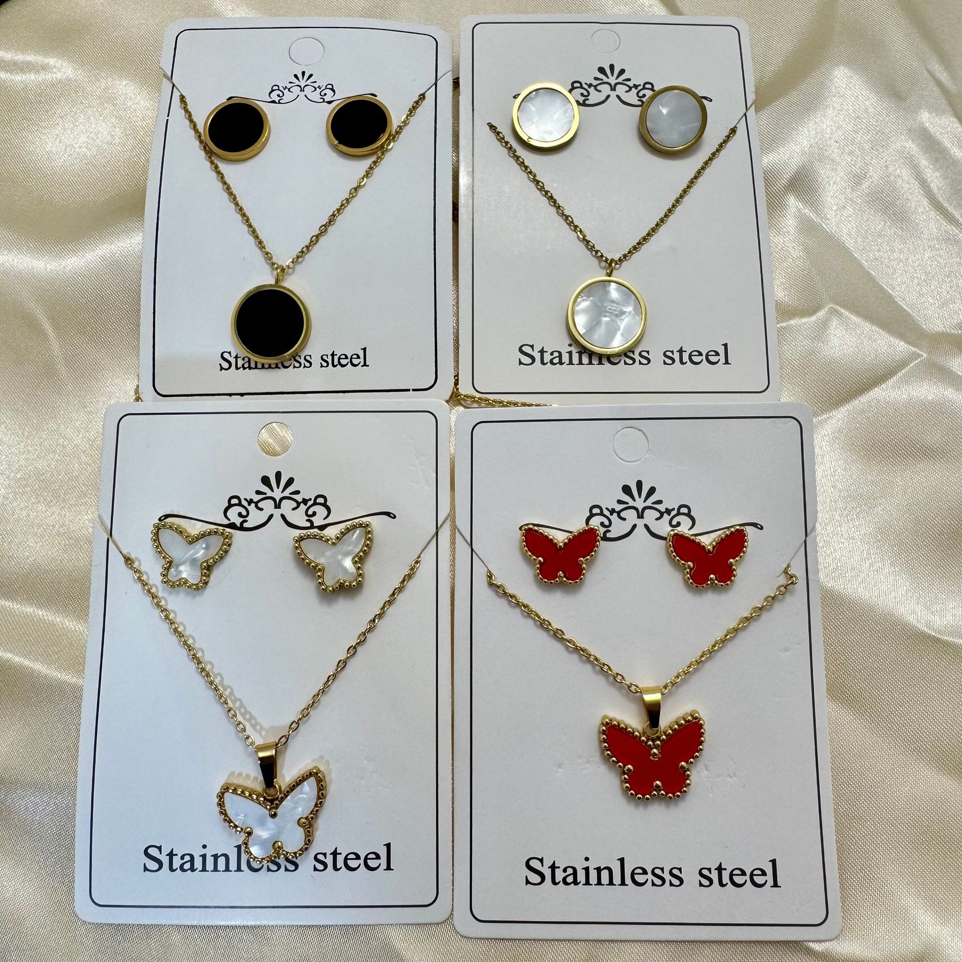 Simple and Elegant Small Fresh Butterfly Necklace High-End Stainless Steel Accessories Cross-Border Hot-Selling Mother-Of-Pearl Clavicle Chain Wholesale