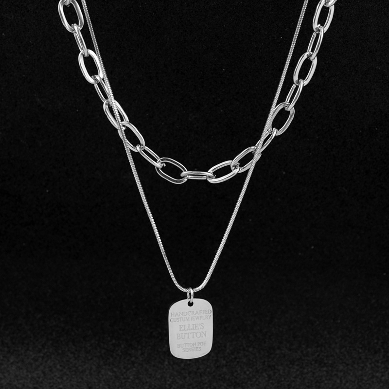 Stainless Steel Necklace Explosions New Letter Small Square Pendant Necklace Thick Chain Overlapping Two-Layer Clavicle Necklace