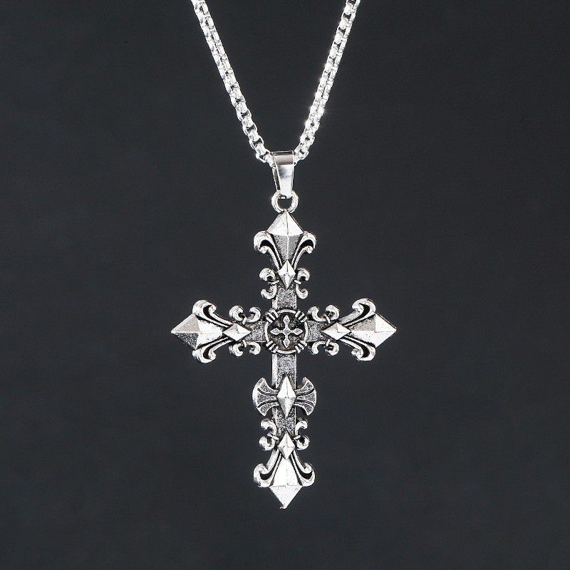 Foreign trade jewelry European and American retro portrait cross titanium steel necklace ins hip-hop men's personalized stainless steel pendant