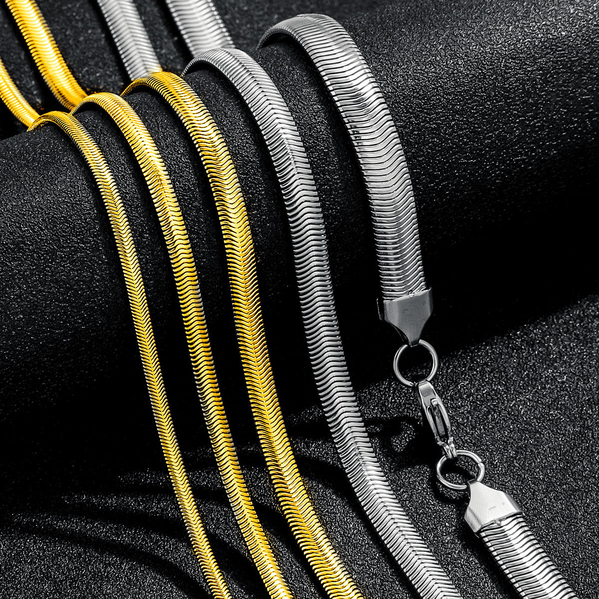 European and American Cross-Border Hip-Hop Gold-Plated Stainless Steel Necklace, Side Six-Sided Polished Nk Necklace, Japanese Buckle Cuban Flat Chain
