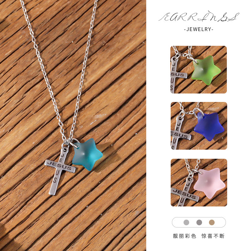 Cross-Border New Product Versatile Hip-Hop Stainless Steel Necklace Horizontal Simple Cross Pendant Sweater Chain Wholesale