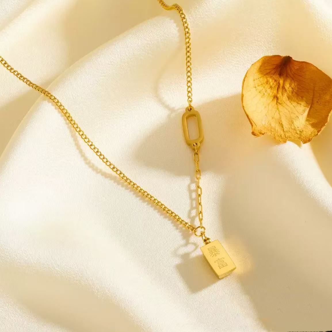 European and American Ins Cross-Border Hot Selling Stainless Steel 26 English Letters Bubble Pendant Chain 18K Gold Electroplated Titanium Steel Necklace