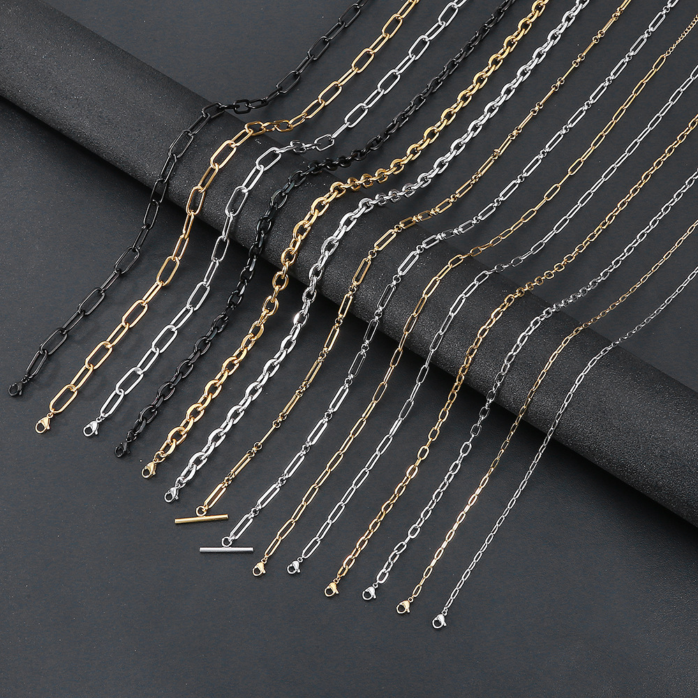 Cross-Border European and American 304 Stainless Steel O-Shaped Chain Without Pendant Necklace Plated with 18K Real Gold Cross Thin Chain Titanium Steel Trend