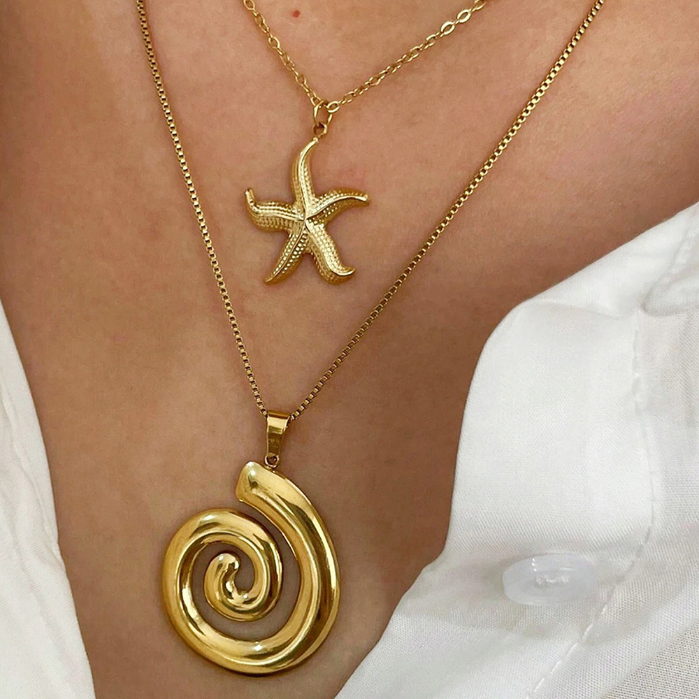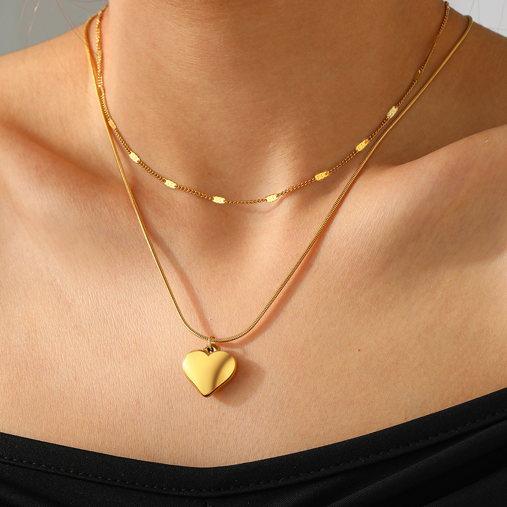 European and American Style Three-dimensional Love Pendant Necklace Stainless Steel Plated 18K Real Gold Double Layer Overlapping Chic Style Clavicle Chain for Women