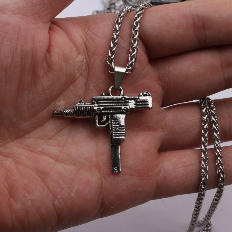 Necklace Men's High-end Personalized Light Luxury Niche Unique Submachine Gun Pendant 2024 New Fashion Hip Hop Accessories