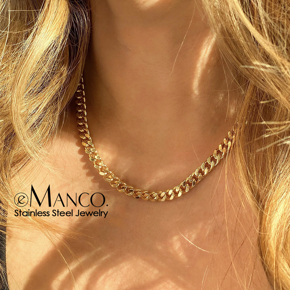 Emanco Cuban Chain Men's and Women's Stainless Steel Necklace Street Hip-Hop Sweater Chain 14K Gold-Plated Neck Chain Wholesale