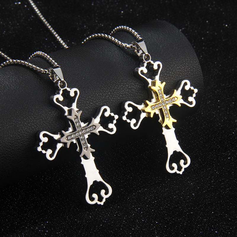 Cross-Border New Product Praying Cross Pendant Necklace Stainless Steel Spanish Necklace Jewelry N2 Short Style Exquisite
