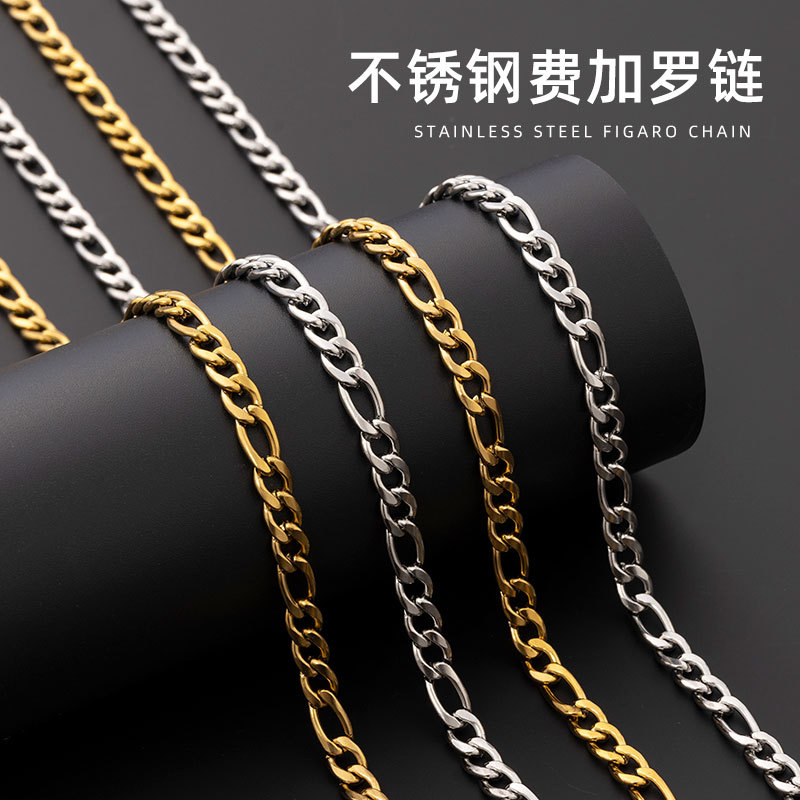 304 Stainless Steel Figaro Necklace 18K Gold Plated 3 to 1 Titanium Steel Chain Hiphop Hip Hip Hop Three One Necklace