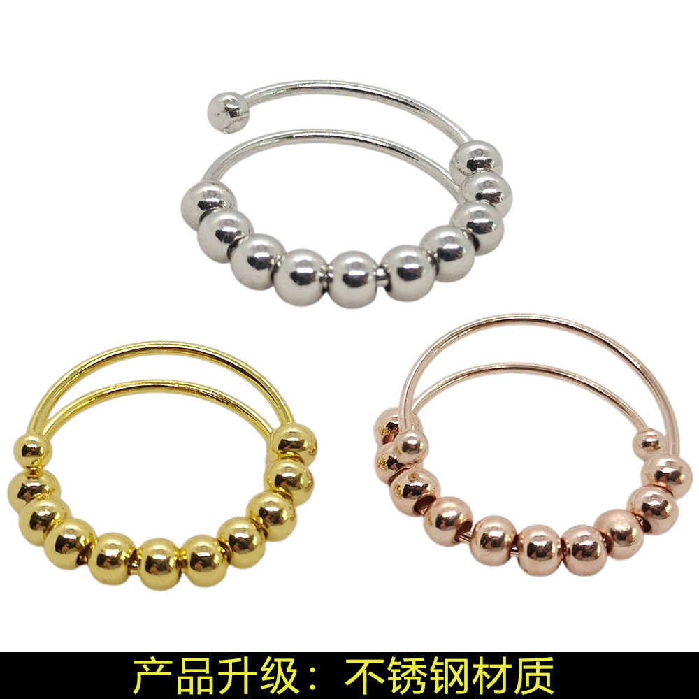 Cross-Border Amazon Popular Open Design Can Rotate and Decompress Anxiety Bead Ring Stainless Steel Jewelry