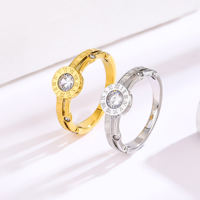 Cross-border e-commerce supply stainless steel cross Roman numeral zircon ring color retention fashion Europe and the United States