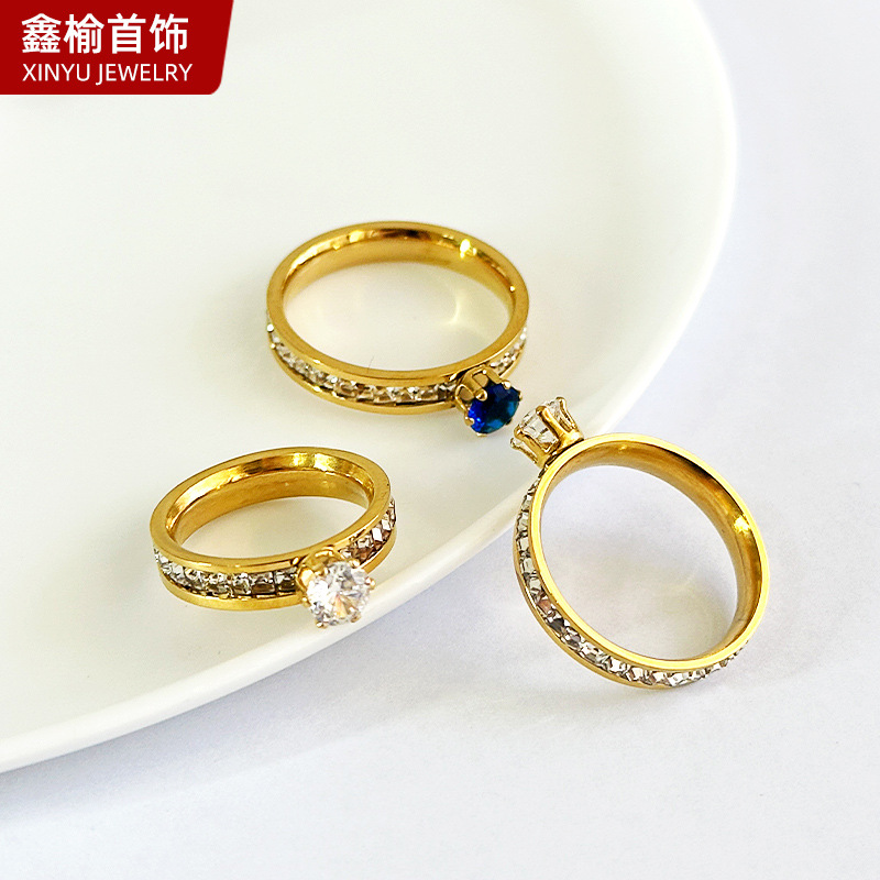 Cross-border exclusive for simple diamond-encrusted titanium steel ring Women's wholesale light luxury small fresh 2023 new stainless steel ring