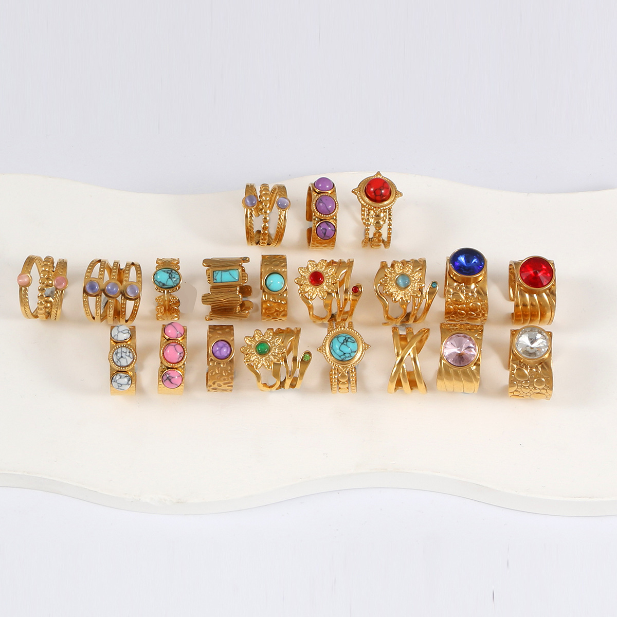Jewelry European and American retro stainless steel gemstone ring 18k gold plated ring wholesale jewelry medieval rings female ai