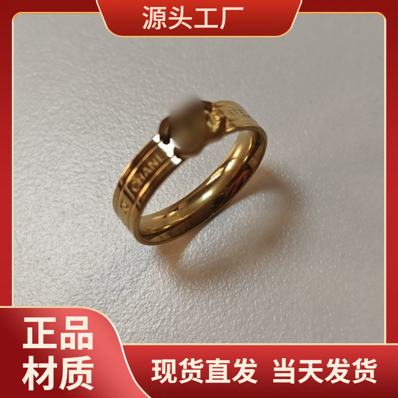 2022 Stainless Steel Titanium Steel Small Chanel-Style Double C Ring Classic Letter Ring Versatile Fashion Trendy Finger Ring for Women