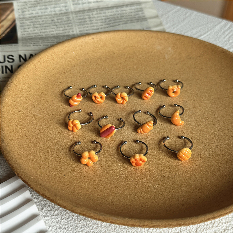 Fun Dopamine Resin Bread Ring Cute Cute Fun Niche Personality All-match Couple Open Index Finger Ring