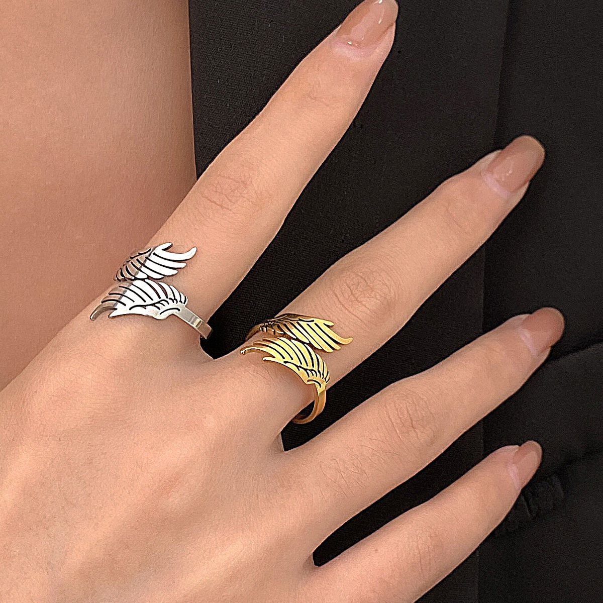 Hot selling personalized Hip Hop couple ring ins niche wings opening adjustable stainless steel jewelry new accessories