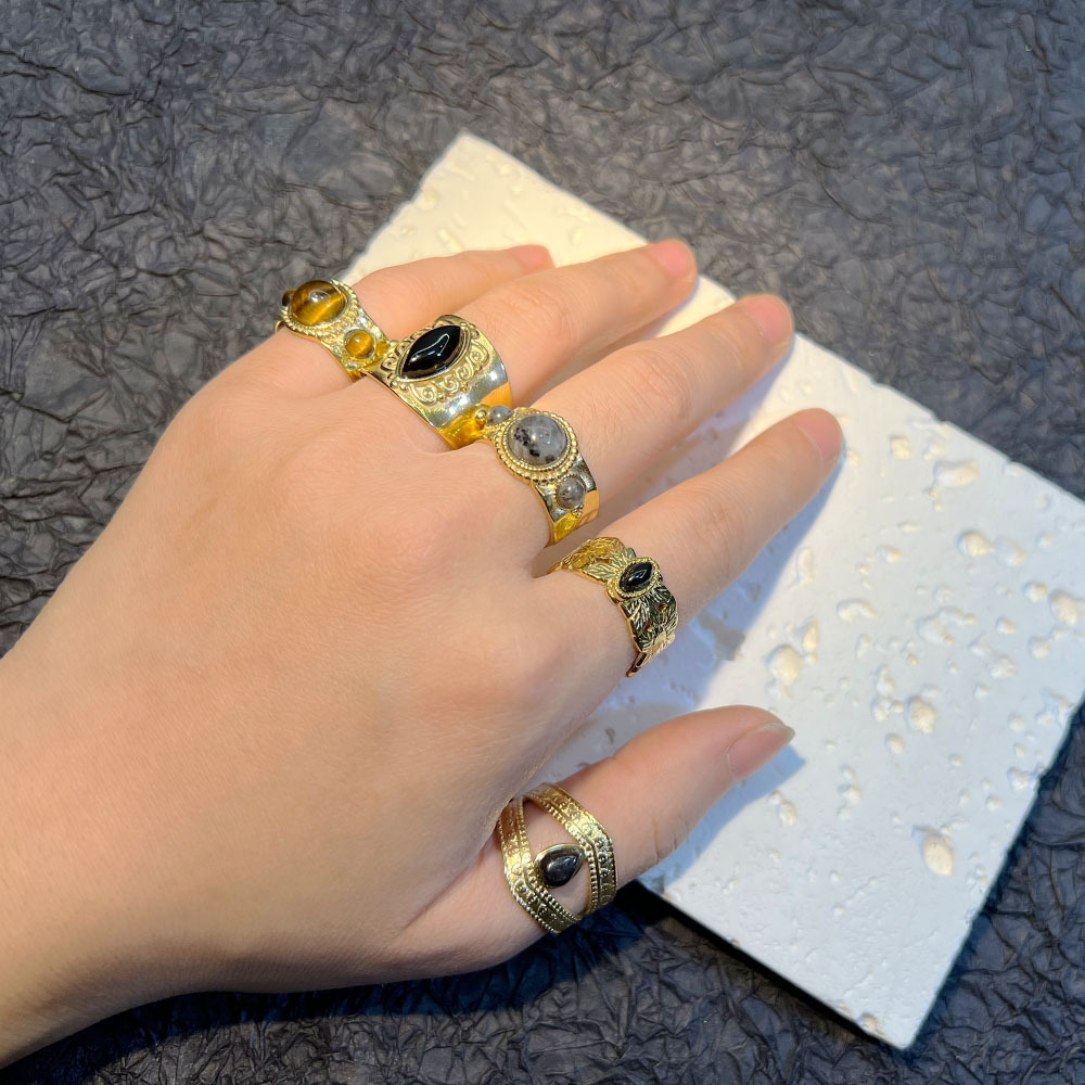 Middle Ages Ring Not Faded Niche Design Natural Stone High-end Sense INS Retro Cross-border Hot vintage Ring