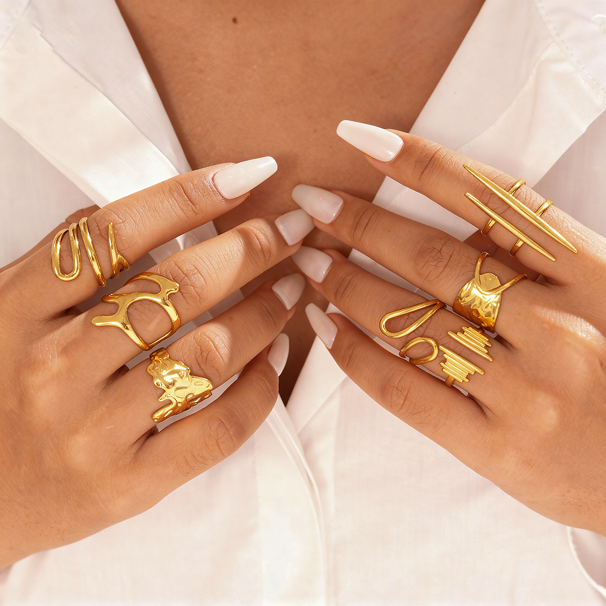 Stainless Steel Irregular Geometric Fashion Ring Maillard Style Open Joint Hand Jewelry Light Luxury High-End Jewelry