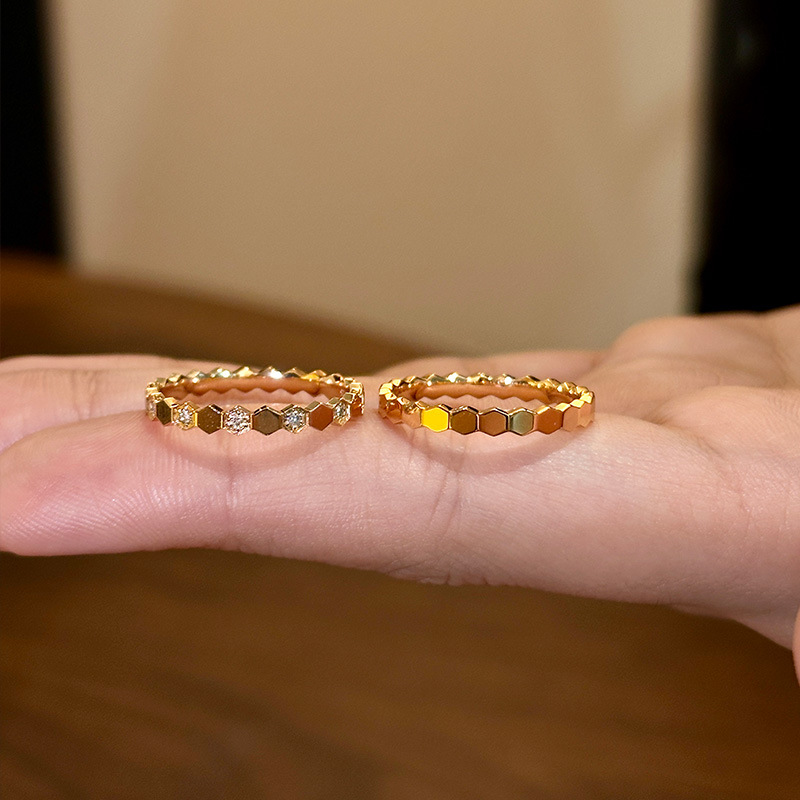Casual Honeycomb Hexagonal Plain Ring Titanium Steel Electroplated 18K Gold Honeycomb Stacking High-End Ring for Women That Does Not Fade