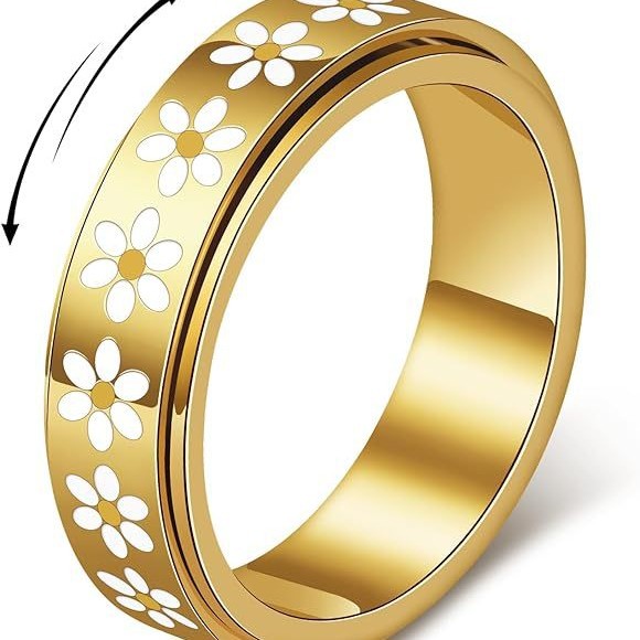 Cross-Border Popular Anti-Anxiety Daisy Rotatable 18K Gold-Plated Universal Wheel Decompression Ring Valentine's Day Gift