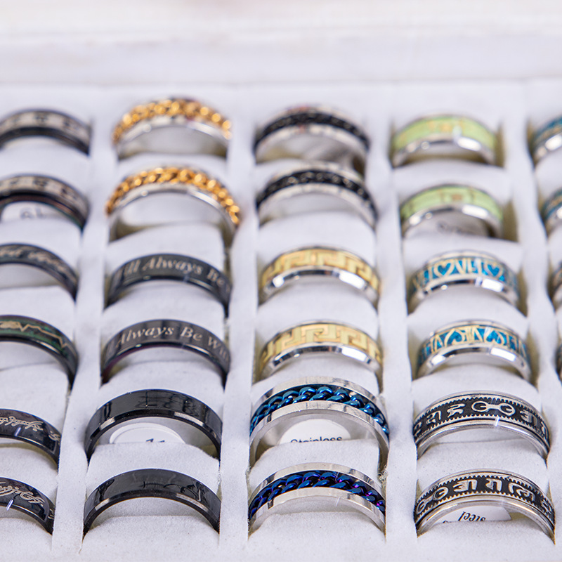 Popular Stainless Steel Mixed Ring Six-Character Mantra Ring European and American Jewelry Couple Ring Multi-Style Rotatable