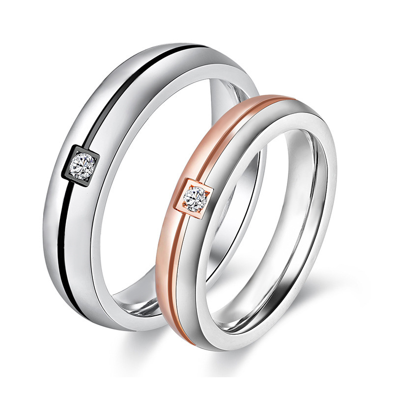 European and American Foreign Trade popular accessories fashion couple ring color matching diamond titanium steel ring stainless steel ring