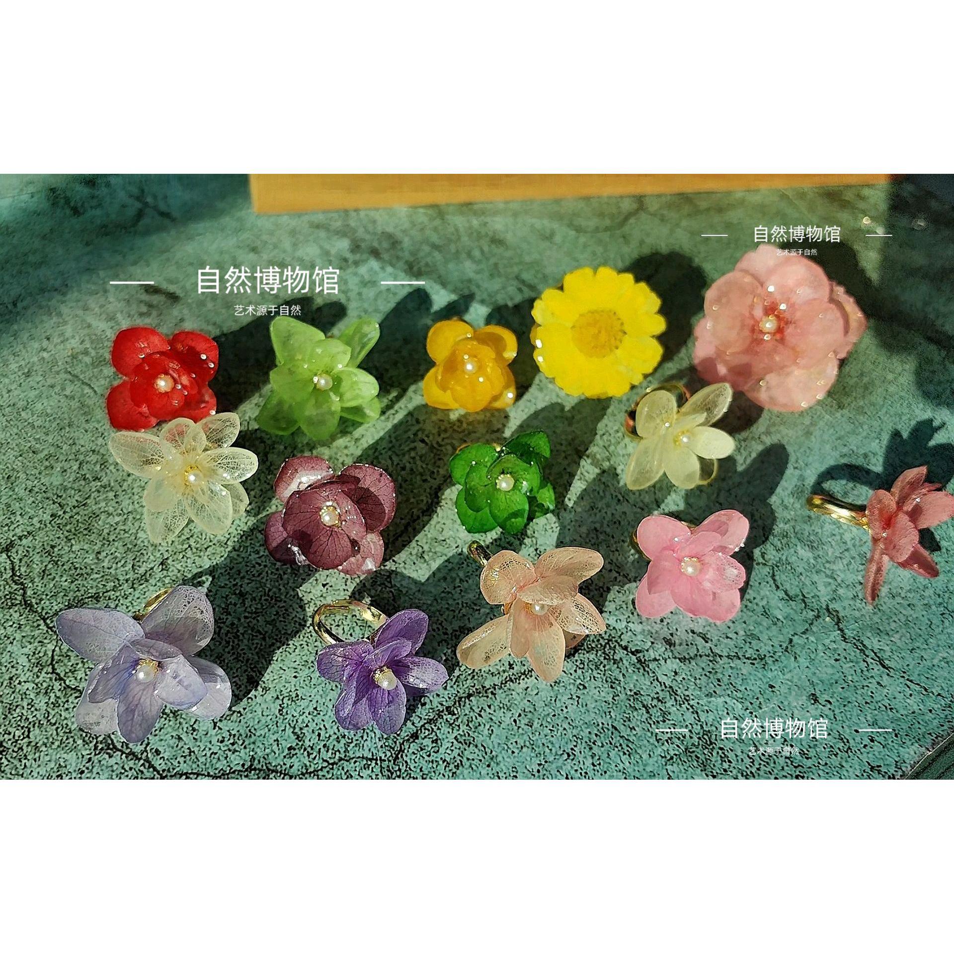Original Design Dried Flower Ring Natural Eternal Flower Hydrangea Girl's Finger Ring Open Ring Adjusting 14k Gold Ring for Women