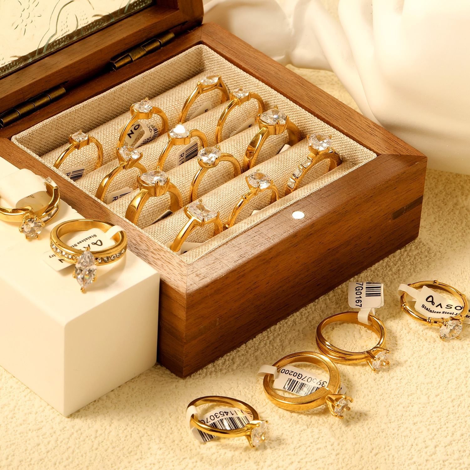 Elegant and Charming Women's Diamond Jewelry, Personalized Luxury, Simple Stainless Steel 18K Gold-Plated Single Ring, Versatile