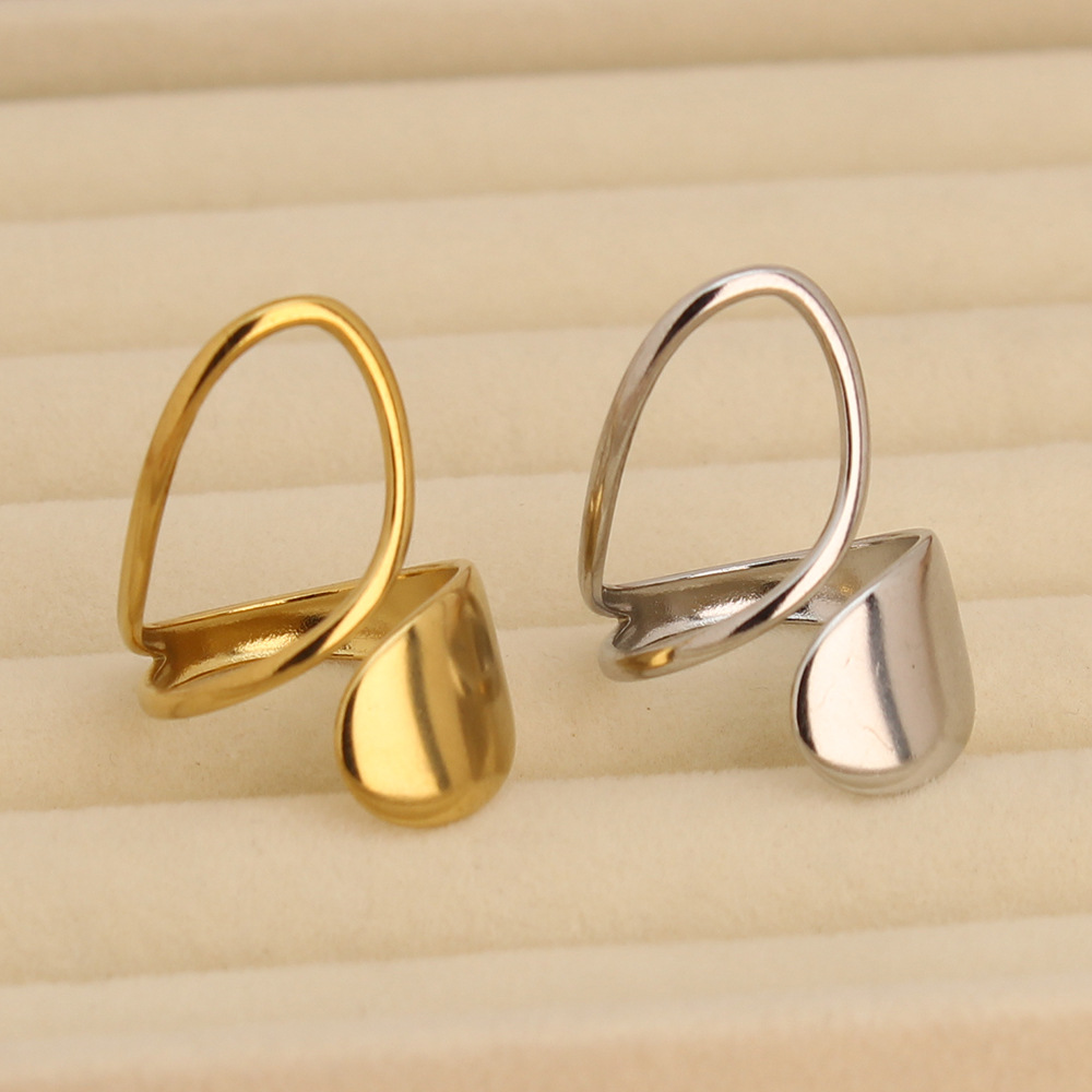 European and American Retro Stainless Steel Oil-Drip Ring, Simple Retro Irregular Edge Niche Design High-End Adjustable Ring