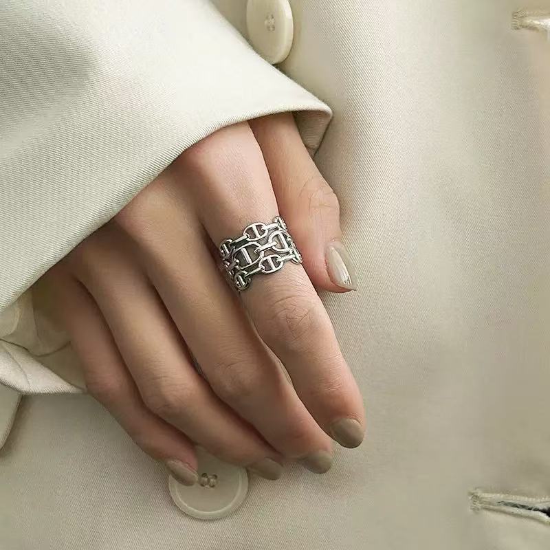 European and American Fashion Stainless Steel Simple Hollow Geometric Ring Women's Personalized Trend Opening Adjustable Titanium Steel Ring