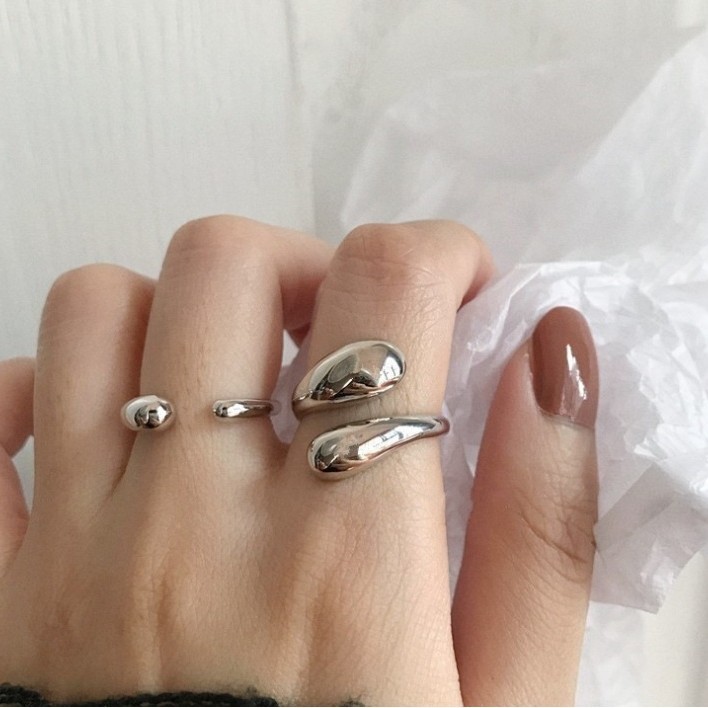 European and American New Ins Style Ring Geometric Asymmetrical Twisted Lines Water Drop Head Popular High-End Ring for Women