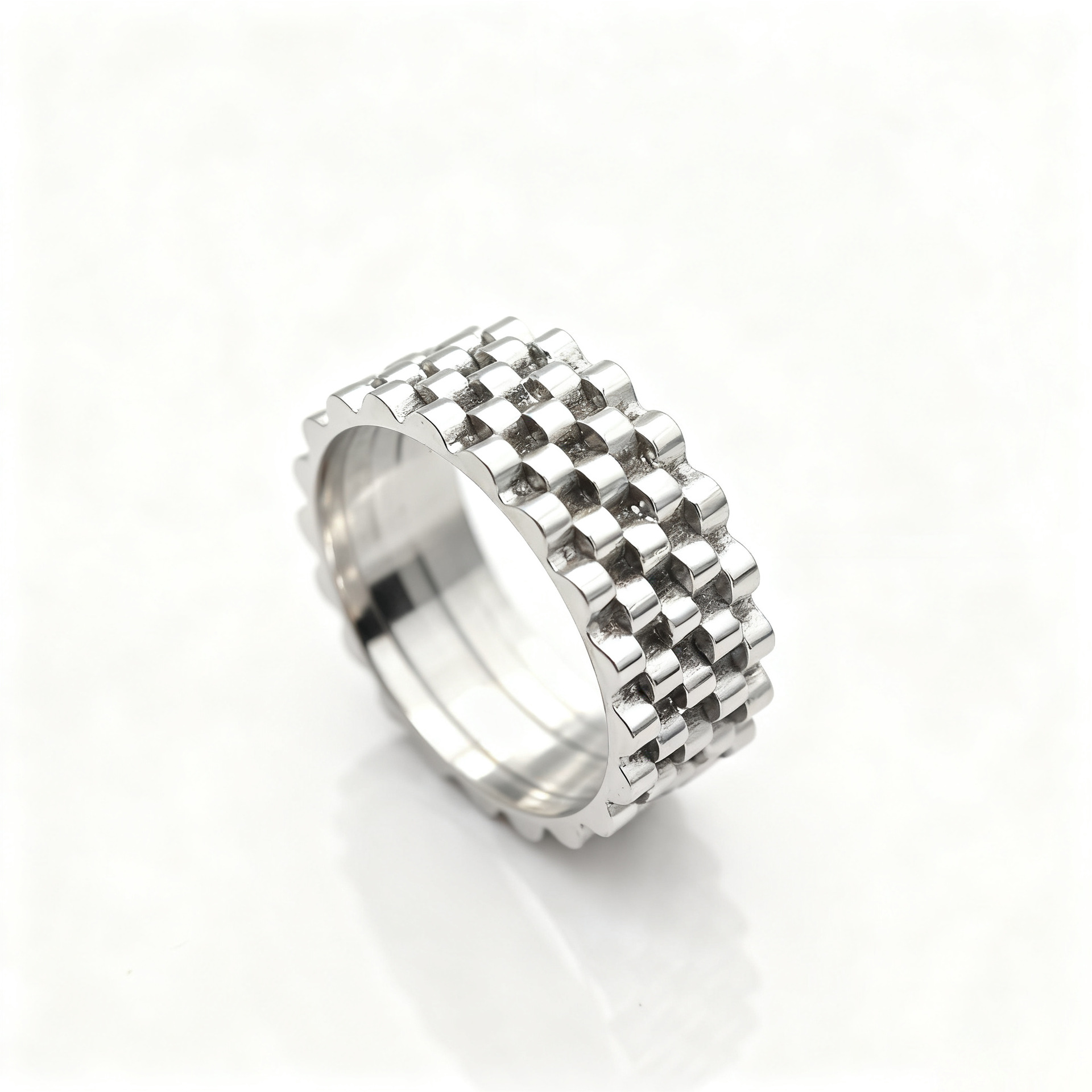 Cross-Border Fashion Trendy Checkered Strap Ring Titanium Steel Ring Trendy Personality Versatile Stainless Steel Ring Niche High-End