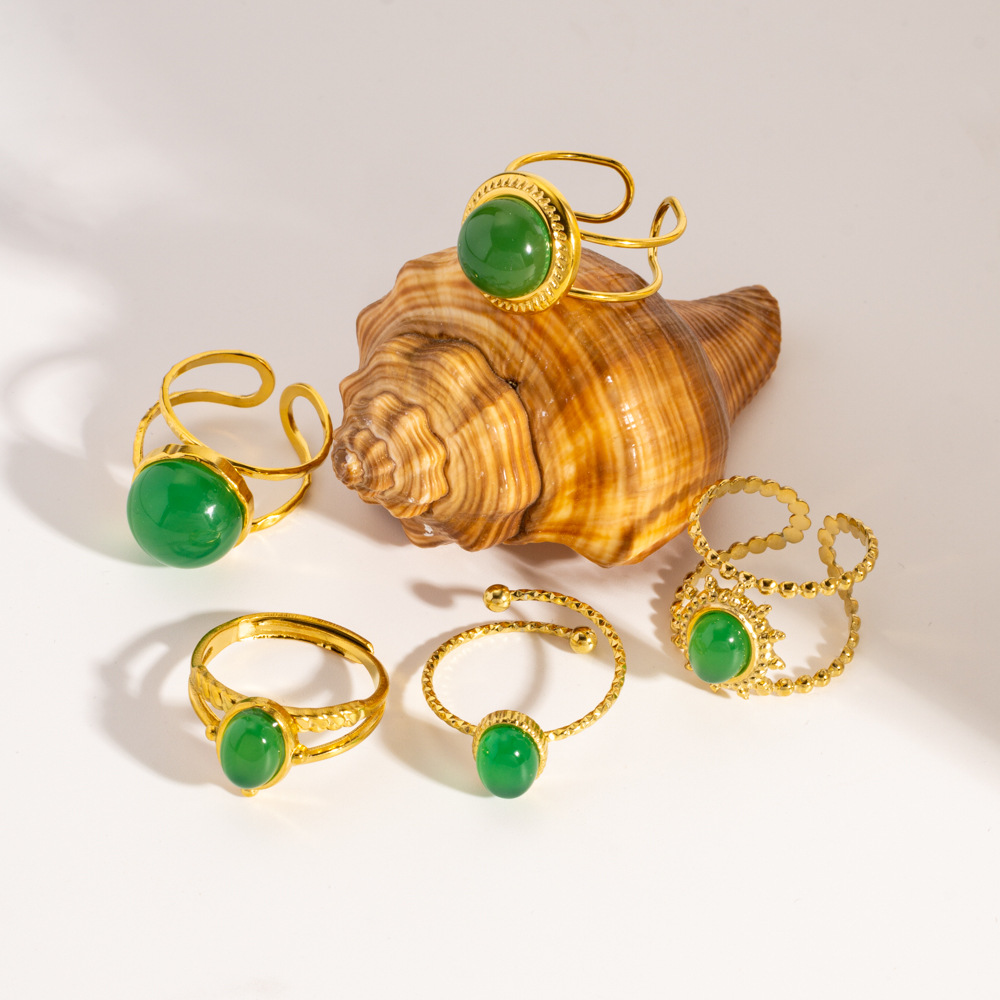 Cross-Border Light Luxury Style Green Agate Series Stainless Steel Ring Women's Fashion High-End Natural Stone Inlaid Open Ring