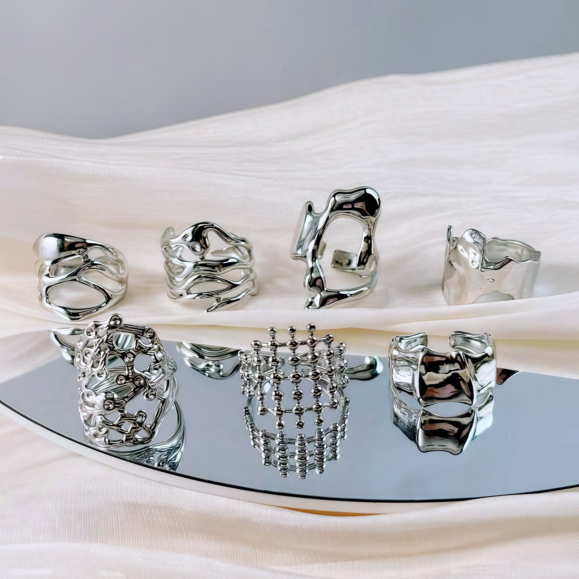 European and American Fashionable Stainless Steel Multi-Layer Hollow Line Ring Cross-Border New Style Knocking Pattern Open Ring for Women Wholesale
