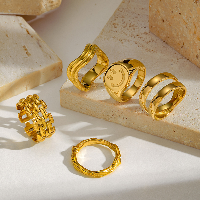 Cross-Border Internet Celebrity Trendy 18K Gold Stainless Steel Glossy Ring European and American Fashion High-End Non-Fading Women's Jewelry Wholesale