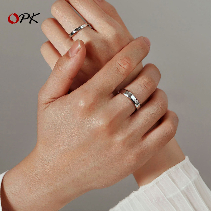 OPK jewelry Korean micro diamond stainless steel ring titanium steel couple ring smooth titanium steel simple single diamond ring